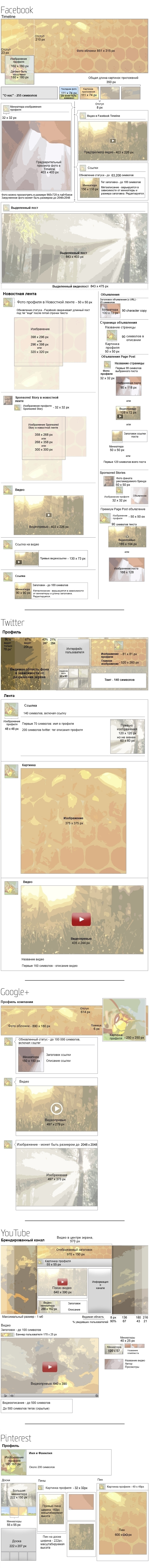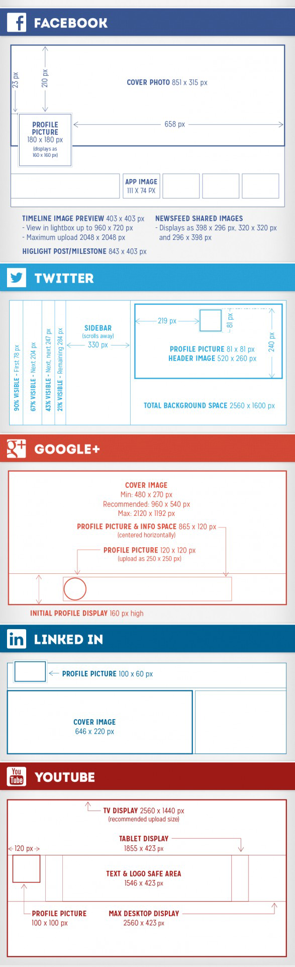 А если вы работаете в сфере SMM, то с оформлением сообществ и профилей в социальных сетях вы сталкиваетесь едва ли не ежедневно. Чтобы упростить вам задачу, мы собрали в одном посте все размеры и требования к графическим и текстовым элементам в Twitter, Facebook, LinkedIn, Pinterest, Google+ и YouTube (а также кое-что еще).
