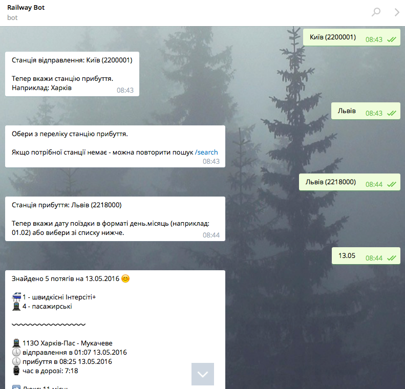 Сегодня привычные приложения и интернет-сервисы начали заменять ботами. Они найдут и скачают для вас книгу, узнают, как дела у конкурентов, а отныне еще и подскажут, на каком поезде доехать до Львова. Веб-разработчик из Киева создал Telegram-бота, который быстро найдет подходящий рейс – пользователю достаточно лишь ввести направление, дату и время.
